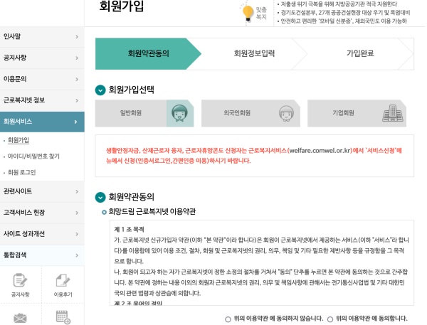 - 개인 회원, 단체 회원 등 본인에게 맞는 회원 유형을 선택합니다.