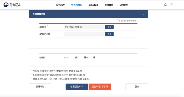4. 발급 신청 및 수수료 결제: 발급 신청을 하고, 필요한 수수료를 결제합니다.