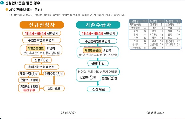 - ARS 전화(1544-9944)로 안내에 따라 신청합니다.